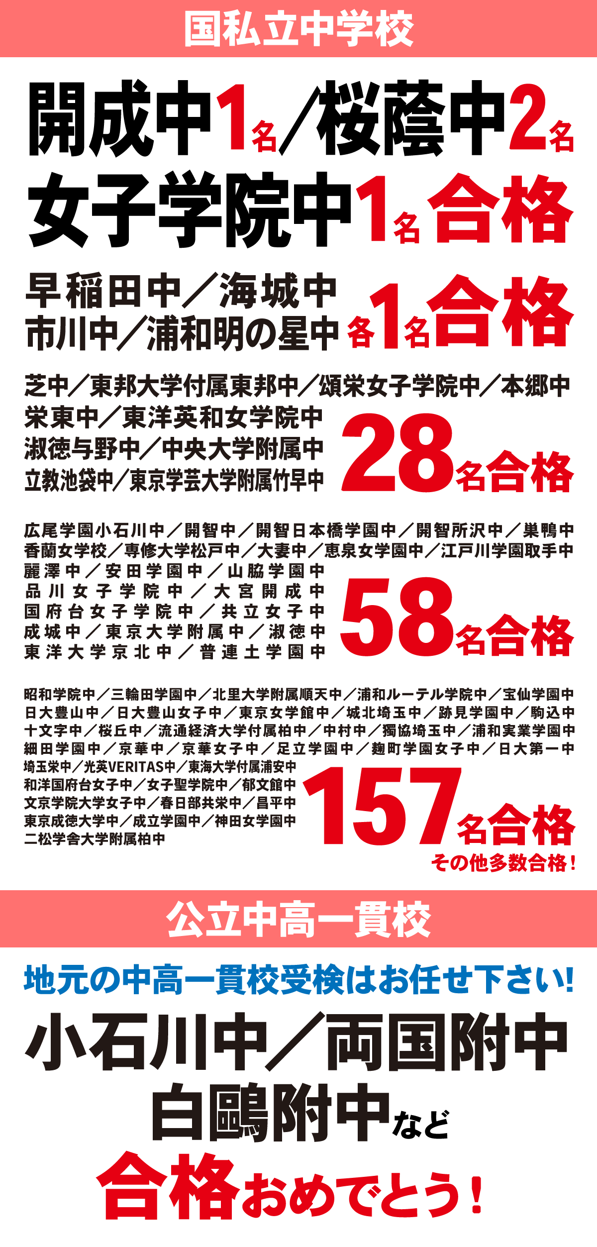 2026年度 中学入試 合格実績 (2026/02/09時点)