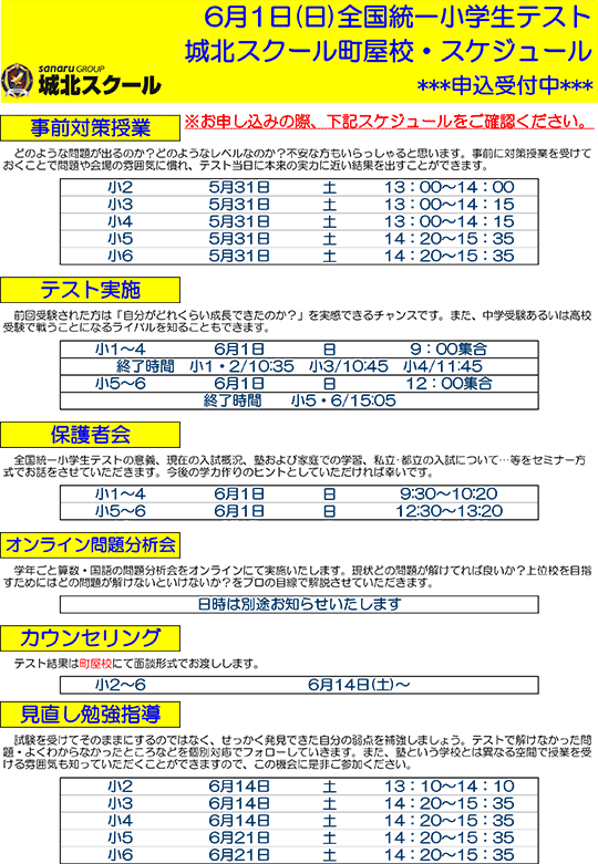 11/3(月・祝)全国統一小学生テスト