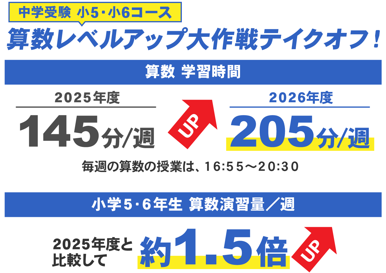 中学受験は、ご存知のように4科受験が主流です。その中でも、合否に大きく影響を及ぼすのは“算数”です。城北スクールは、入試の最前線に立つ者として、最新の入試傾向に合わせて、どこよりも算数の学習量を大きくボリュームアップさせ、一人ひとりの第一志望合格に貢献します。