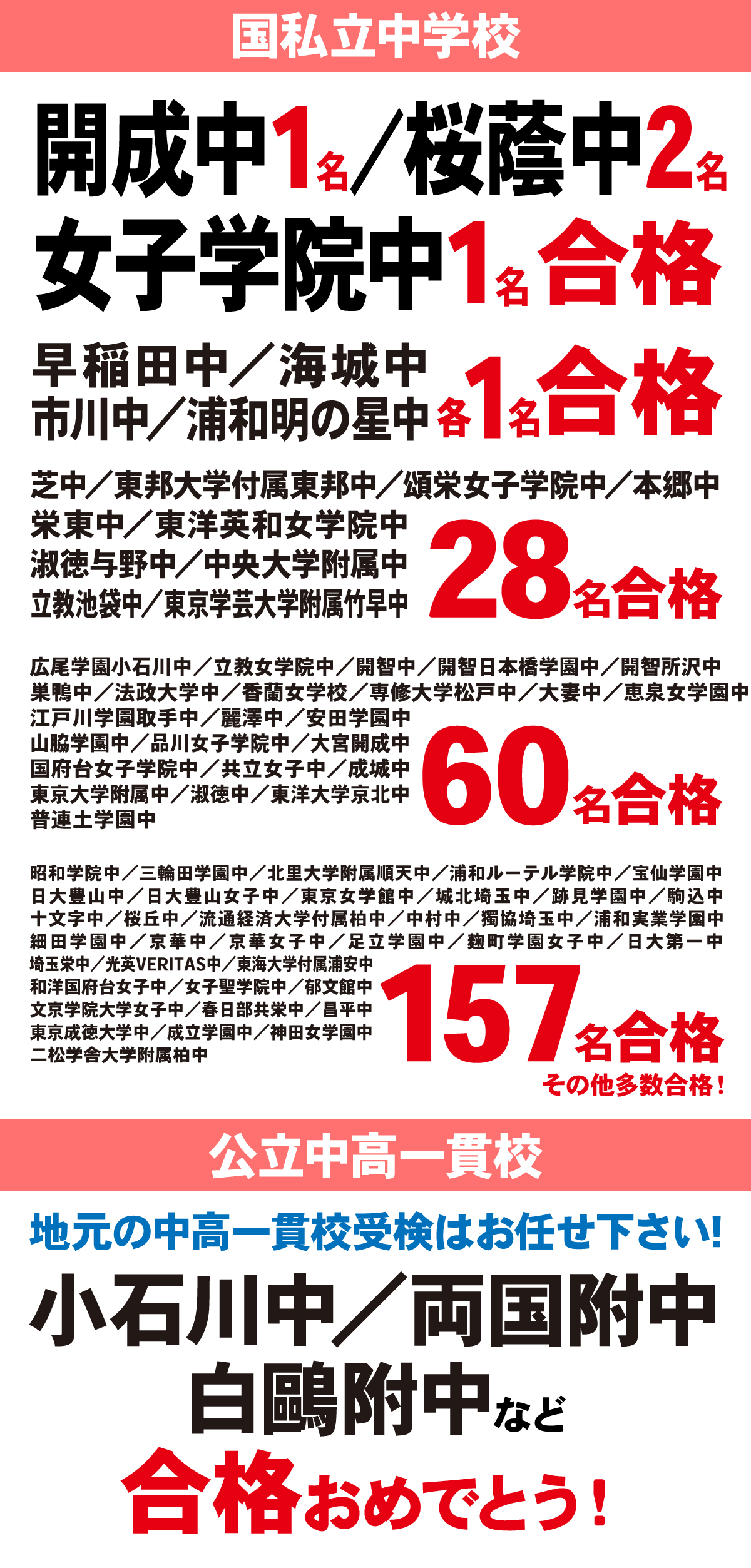 2026年度 中学入試 合格実績 (2026/02/09時点)