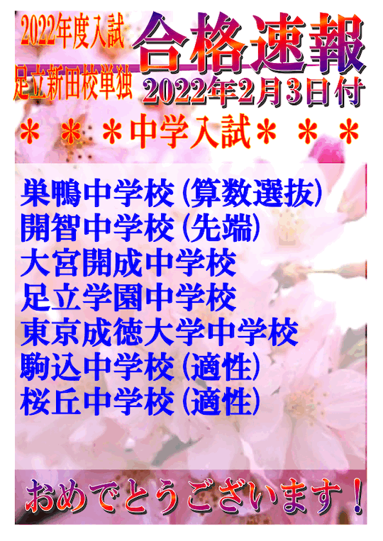 城北中学校/栄東中学校/大宮開成中学校 合格