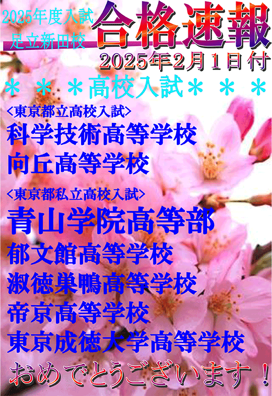 都立三田高等学校/淑徳巣鴨高等学校 合格