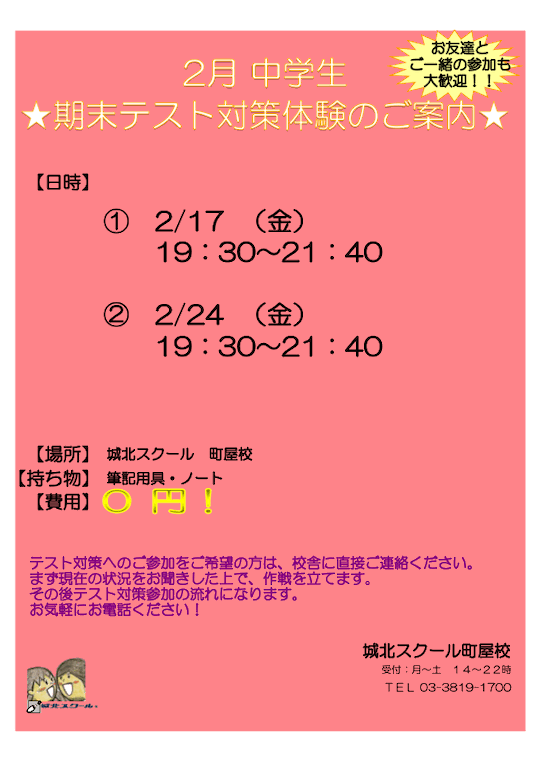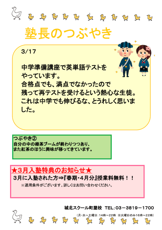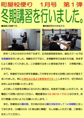 町屋校からのおしらせ