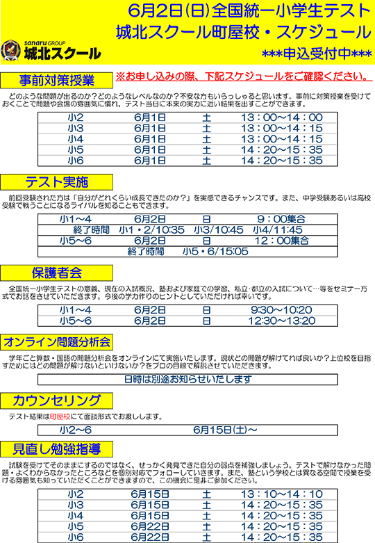 11/3(月・祝)全国統一小学生テスト